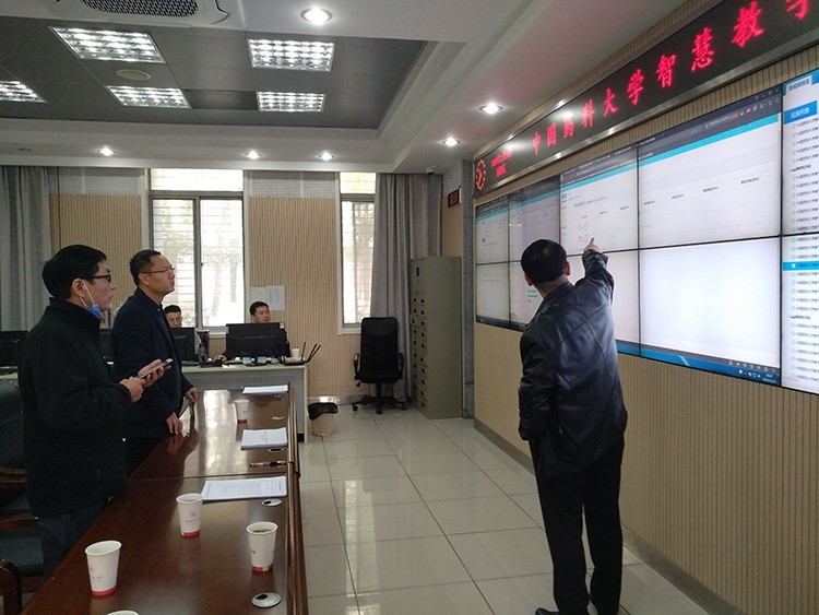 2020年11月20日,中國礦業(yè)大學(xué)徐海學(xué)院兩位領(lǐng)導在相關(guān)人員的陪同下蒞臨中國藥科大學(xué)和江蘇科技大學(xué)參觀(guān)考察我司承建的智慧教室項目。