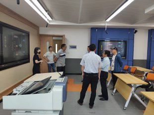 2020年6月10日下午,鹽城工業(yè)職業(yè)技術(shù)學(xué)院藺俊副校長(cháng)一行5人在相關(guān)人員的陪同下參觀(guān)了我司承建的江蘇食品藥品職業(yè)技術(shù)學(xué)院智慧教室、微課教室、多媒體教室、學(xué)業(yè)支持中心等項目